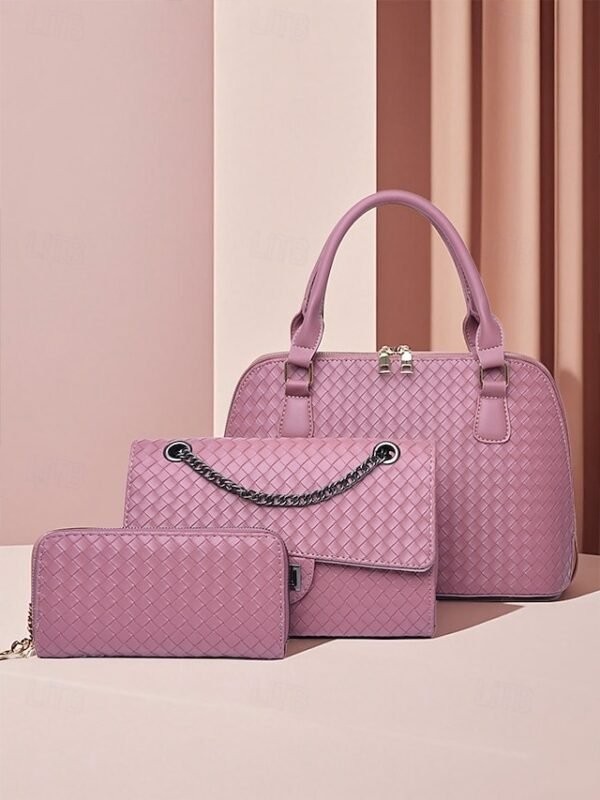 Women’s 3-Piece Handbag Set – Pink Faux Leather Tote,