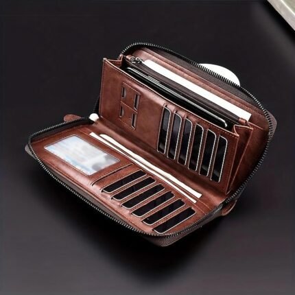Men’s Genuine Leather Long Wallet – Vintage Bifold Clutch