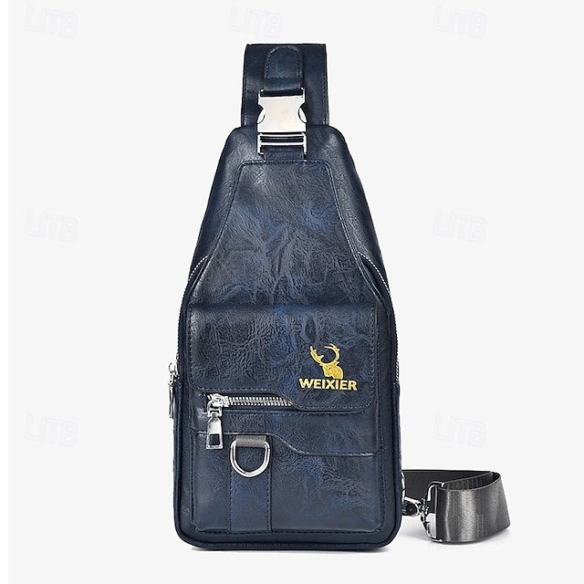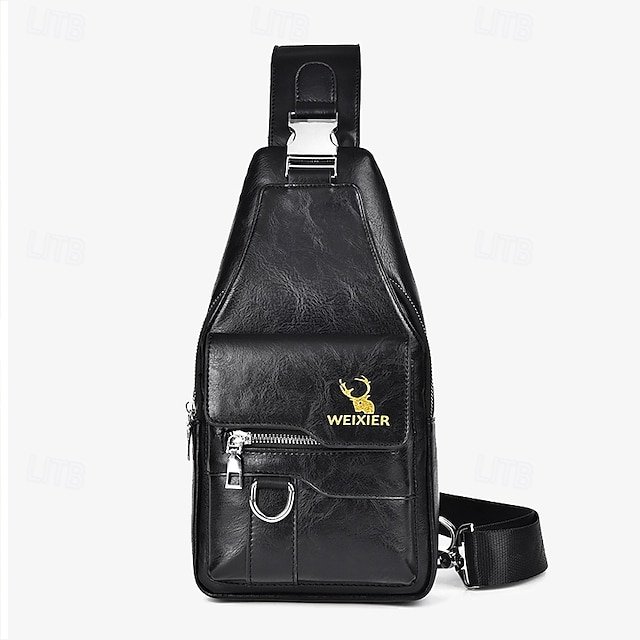 Gender: Men’s, Type: Chest Bag, Material: PU Leather, Embellishment: Buckle, Zipper, Multiple pockets, Pattern: Solid Color, Detachable strap: Non-Detachable, Adjustable strap: Adjustable, Occasion: Outdoor, Daily, Holiday, Width (cm): 6, Height (cm): 30, Length (cm): 15, Function: Large Capacity, Durable, Multi Carry, Category: Crossbody Bag,