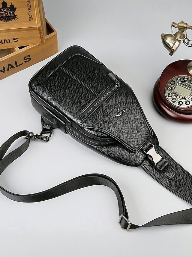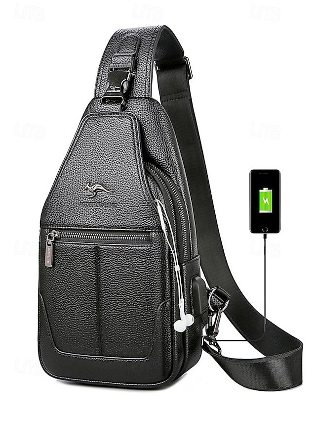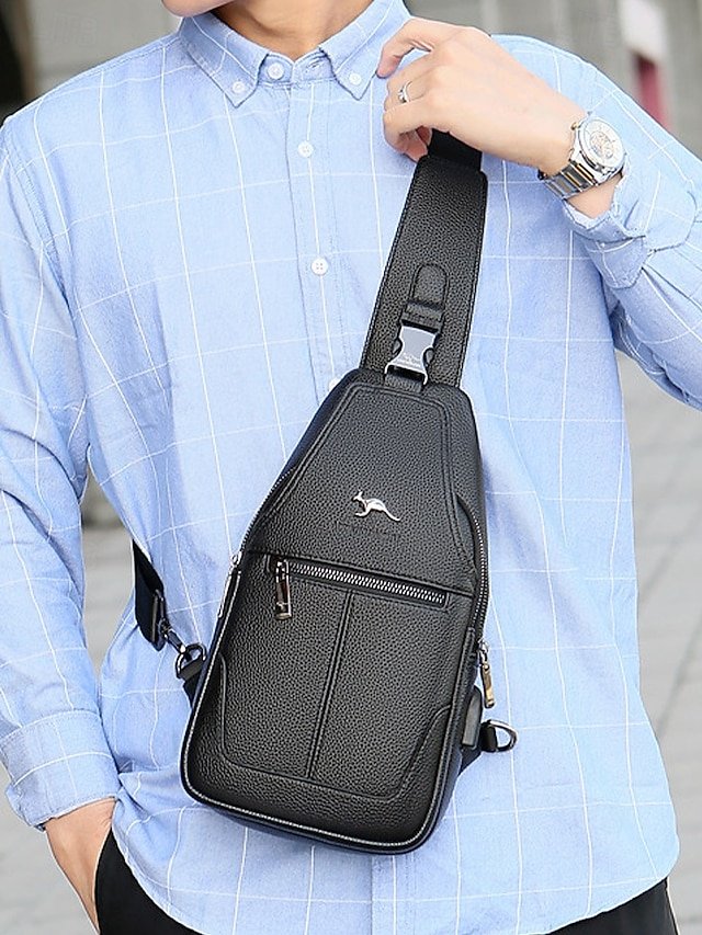Gender: Men’s, Type: Chest Bag, Material: PU Leather, Embellishment: Zipper, Multiple pockets, Pattern: Solid Color, Detachable strap: Non-Detachable, Adjustable strap: Adjustable, Occasion: Travel, Father’s Day, Office, Casual, Width (cm): 16, Height (cm): 32, Length (cm): 6, Function: Waterproof, Durable, USB Port, Category: Crossbody Bag,