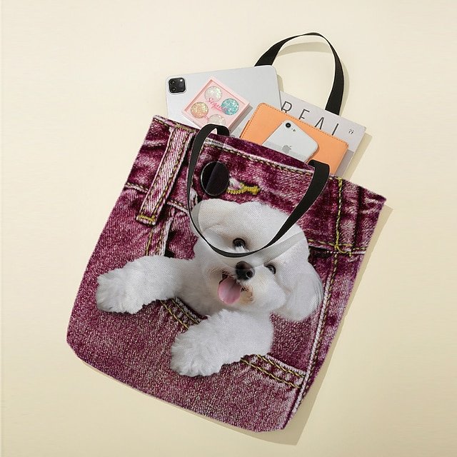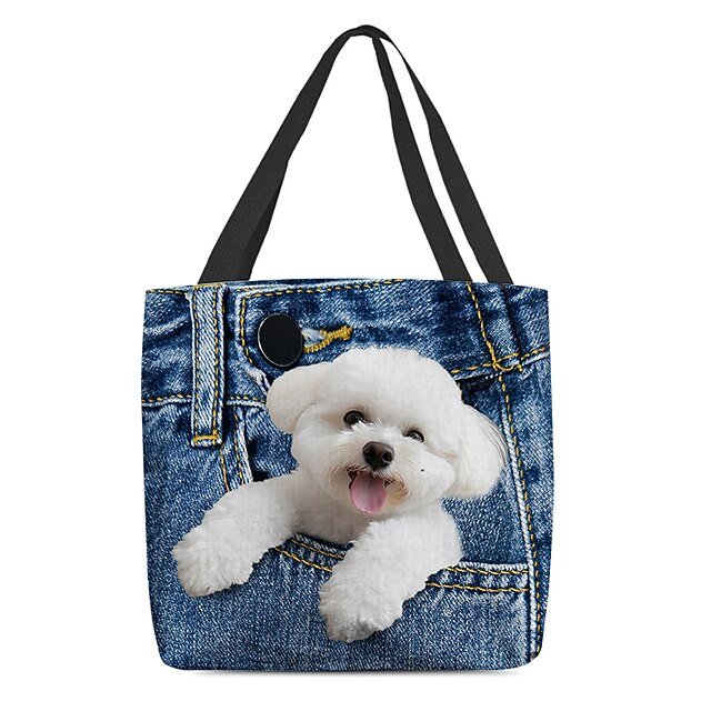 Gender: Women’s, Type: Canvas Tote Bag, Material: Polyester, Embellishment: Print, Pattern: Dog, Occasion: Shopping, Holiday, Daily, Width (cm): 1, Length (cm): 45, Height (cm): 45, Function: Lightweight, Foldable, Large Capacity, Category: Shoulder Bag, Tote,